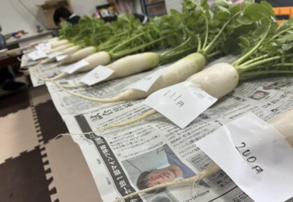 こんにちは(^^)守山市放課後等デイサービスたんぽぽ タバタです(^^)今回はたんぽぽで収穫できた大根を使って買い物ごっこをしました。お店係をするお友だちも居ましたね!それぞれ、好きな大根を選んだ後、大根に貼ら