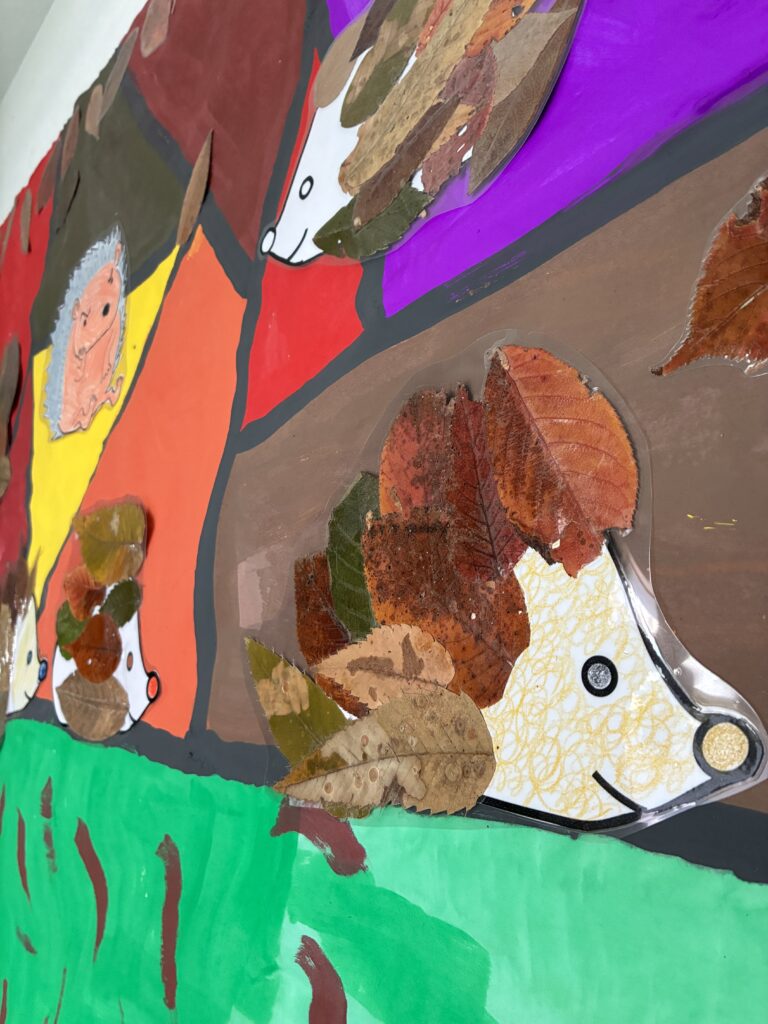11月頭から、落ち葉拾いから始まった壁面制作です。今回も最高です!
