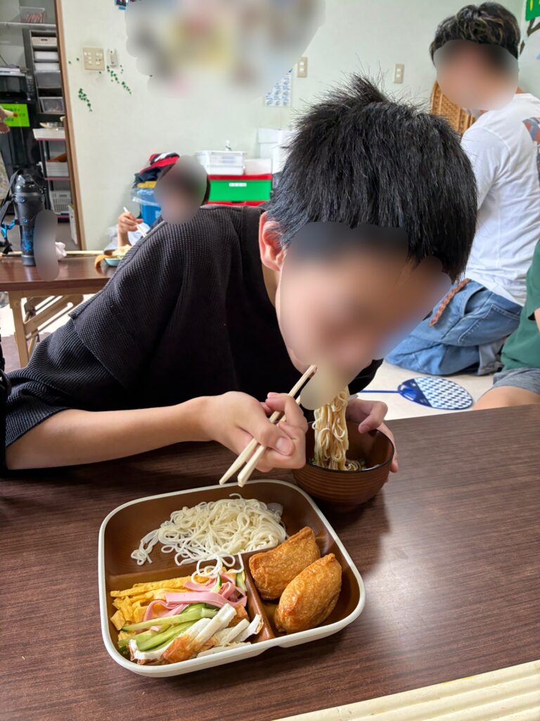 本日の昼食作りはソーメンと稲荷寿司です。ソーメンって実はすごい。食欲が落ちがちな暑い夏に、さらっと食べれて、さらに高カロリー!日本人は凄いですよね!お友だちはそれぞれ与えられたミッションをまず理解し、そこから実行に移してくれました。個人個人、別メニューで皆クリア出来たら完成となります!!みなさん美味しいとおかわりしてくれました! おまけ写真も載せておきます(^^)