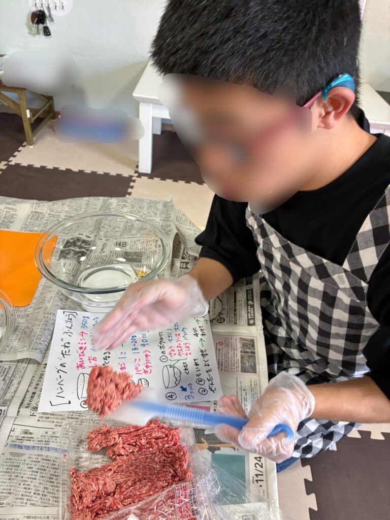 こんにちは(^^)放課後等デイサービス たんぽぽ タバタです。13日、スポーツの日(知ってました?)にクッキングです! ハンバーグ定食を作りました!今回、ハンバーグのひき肉は平和堂一押しの味わい牛の冷凍されていない生肉からのひき肉を使用しました!ハンバーグに添えたパプリカはたんぽぽのプランターで育ったものです!スタッフも味見させてもらいましたが、そりゃ~もう、美味しかったですよ!皆、たくさんおかわりしてくれました(≧▽≦)